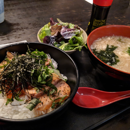 Updating my review: I revisited the restaurant last night (Monday) before :pm. The friendly staff showed me to the table and patiently allowed me to look through the menu although it shows online they close at pm. I ordered skewers this time around. Had the beef skewers and grilled squid. Portions are rather small but I enjoyed the taste/flavor of both. My friend ordered the donburi rice bowl and upgraded it to a set which includes a salad and an appetizer. Everything was tasty. Will definitely visit again and recommend this place if u like charcoal grills. The servers were also very nice and offer tea refills even after closing hrs. We were there for under an hour. Will attached food pics of this visit.______________________st visit: Went there and had a set meal. It is decent and tasty but the presentation I was told used to be better vs now being more of a bento box style. I would probably not do the set in the future and go with the individual skewers.